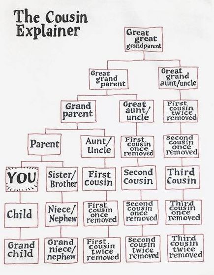 The Cousin Explainer tea towel is available for £9.95 (about 16 Canadian dollars) from Present Indicative, a gift company in Reading, England.